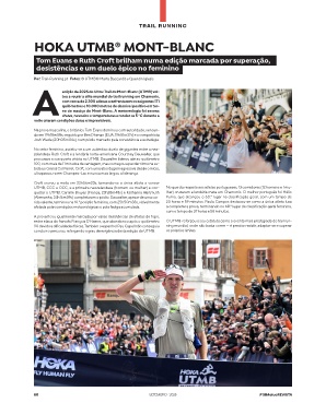 quistar o UTMB. Camille Bruyas (França, 23h28m48s) e Katharina Hartmuth lher) cruzaram a lendária meta em Chamonix. O melhor português foi Hélio