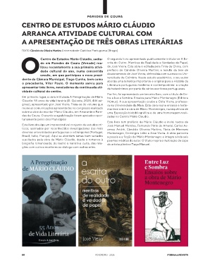 des de Coura. O evento e a publicação foram apoiados opor- zadas no Centro Mário Cláudio.